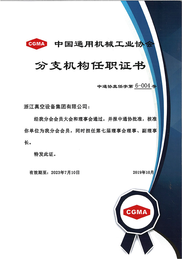 • 中國通用機(jī)械工業(yè)協(xié)會會員證書